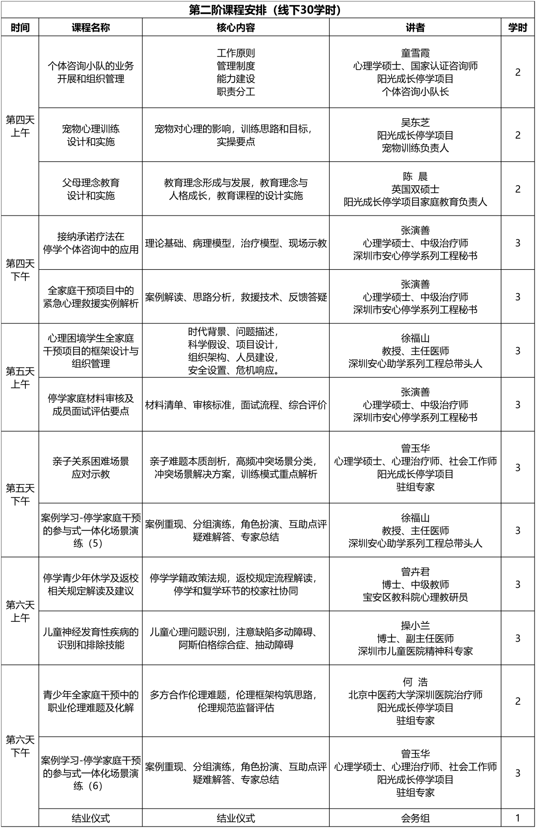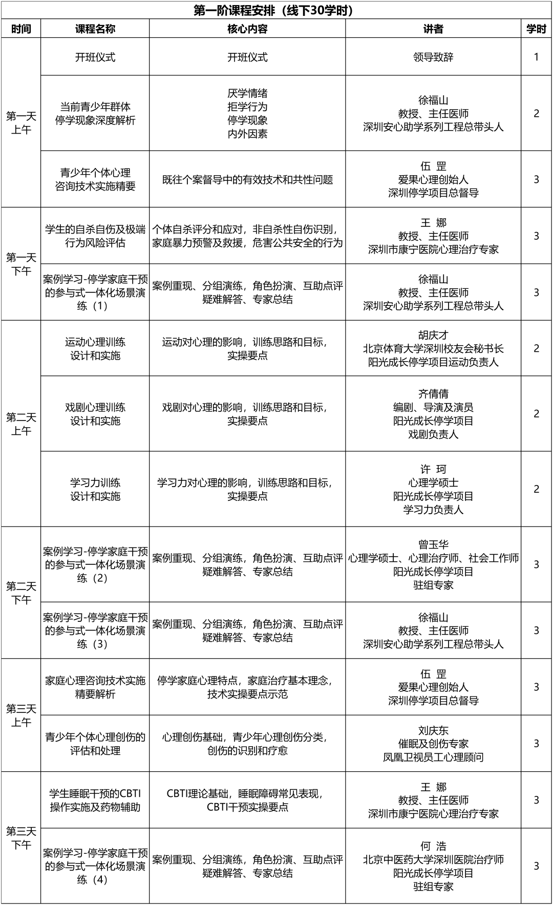 此次培训共70课时,授课形式包括理论讲解、技术实操、案例解析和模拟演练等。涵盖青少年心理干预基本理论知识、技术方法等内容,聚焦针对厌学、拒学和停学青少年开展综合干预的策略及理论、实践技能、案例分析等多维模块。