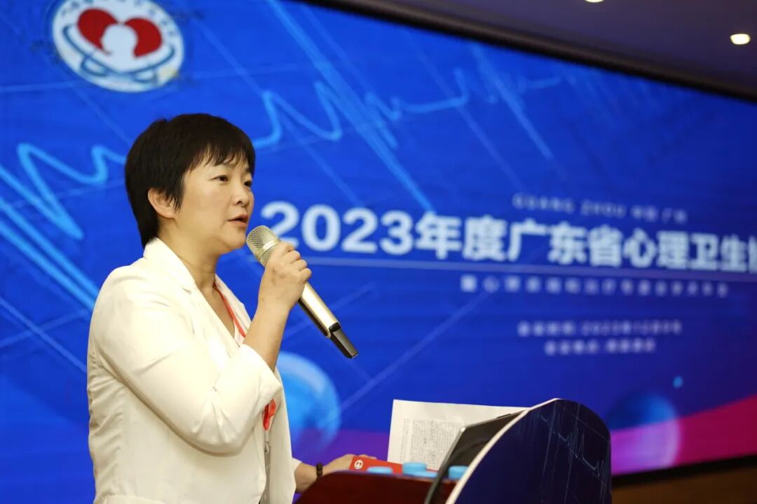 随后,中山大学附属第三医院任杰副院长做大会致辞,她强调:当前我国经济社会快速发展,如何促进人民群众的心理健康发展是重要的时代课题,也是我们心理工作者和医院管理者的社会责任。中山大学附属第三医院精神心理科是优势特色学科,作为广东省心理卫生协会依托单位,中山大学附属第三医院一直以来与省心协紧密合作,全力支持协会高质量发展,不断探索生物-社会-心理的全人医学模式,为临床患者提供更加全面的医疗服务,为健康广东保驾护航。