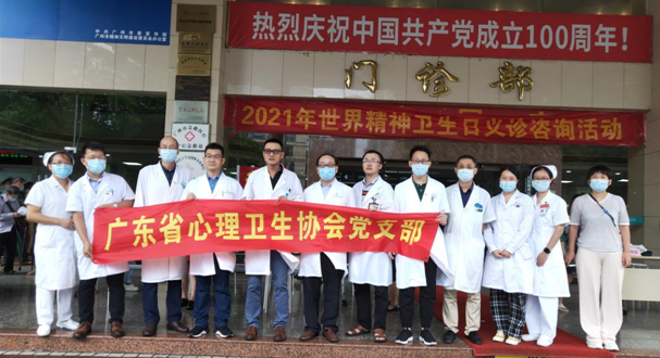 为加强精神卫生知识的宣传普及,提高公众对精神疾病的认识,提高公众的心理健康水平, 2021年10月9日,广东省心理卫生协会党支部联合中山大学附属第三医院心理科党支部,在中山大学附属第三医院门诊楼一楼大厅外开展“我为群众办实事”实践活动--2021年世界精神卫生日义诊咨询活动,为市民提供免费的义诊咨询服务。