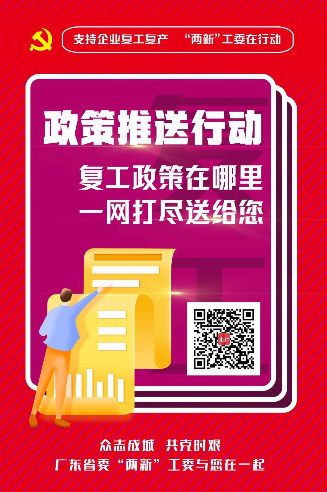 2月26日,广东省委“两新”工委印发《强化党建引领支持非公企业复工复产“十项行动”》,为方便非公企业一“键”获取有关政策、获得有关服务信息,发布指引图如下: